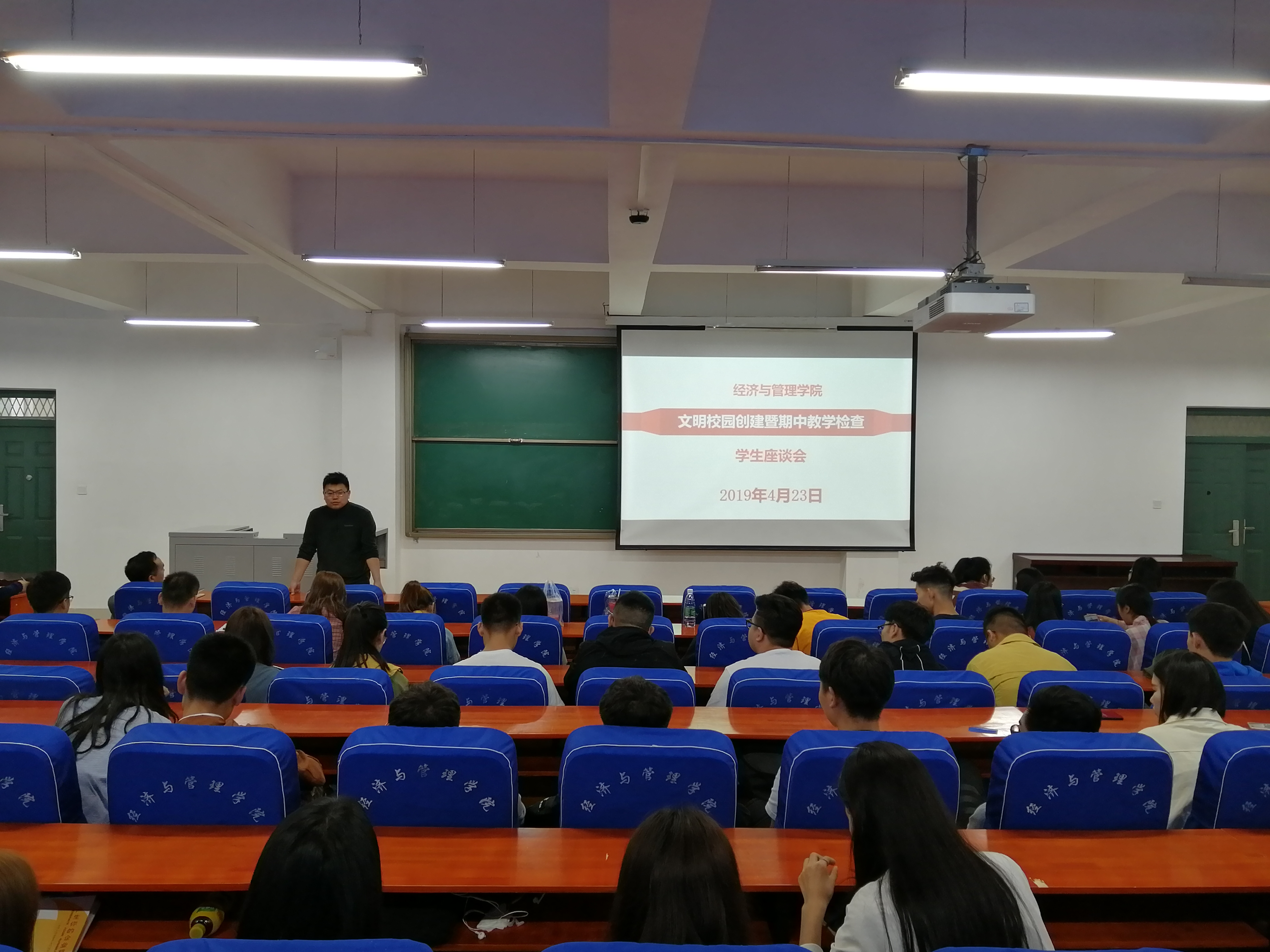 2019年4月22日中午12:30,文明校园创建暨期中教学检查学生座谈会在经管楼211召开。党总支书记张云超、副院长仝新顺、辅导员代表、教学教务秘书出席了本次会议,16级、17级、18级班委成员参加了本次会议。会议由副院长仝新顺教授主持。