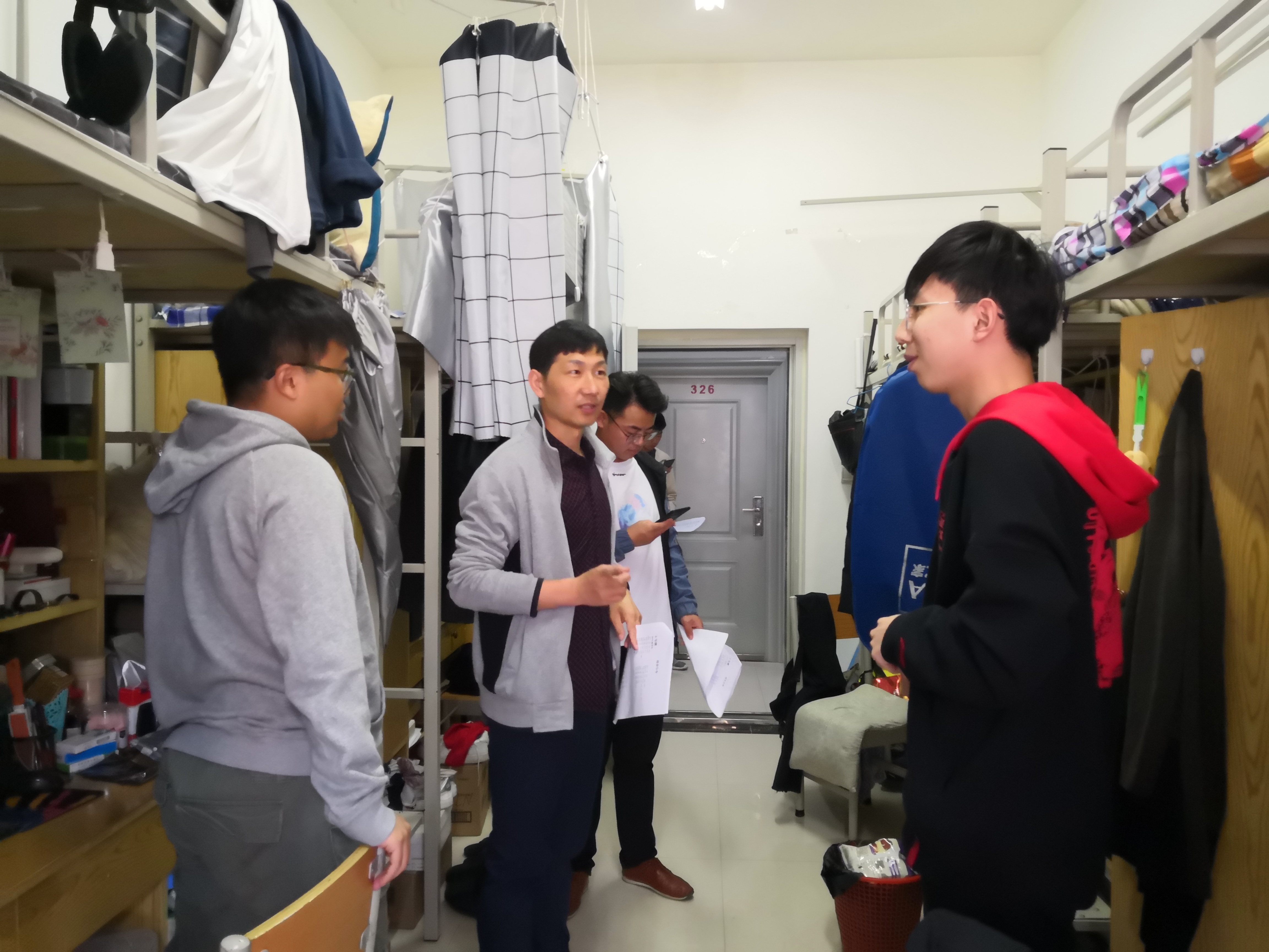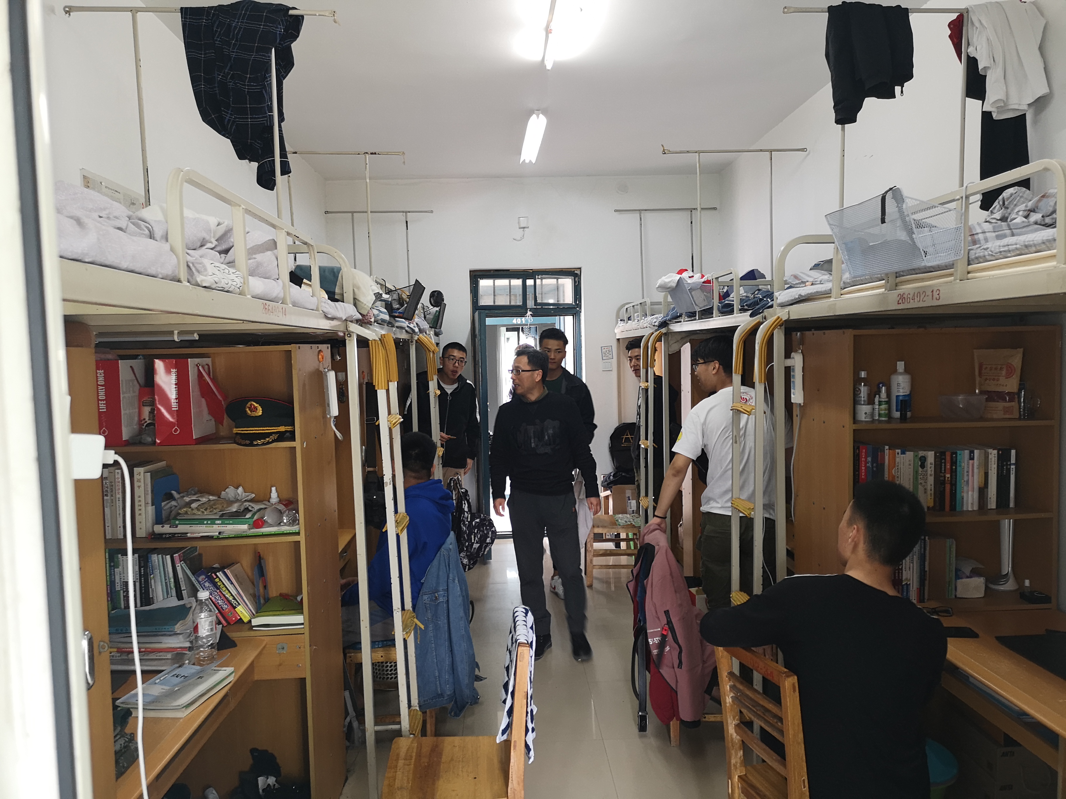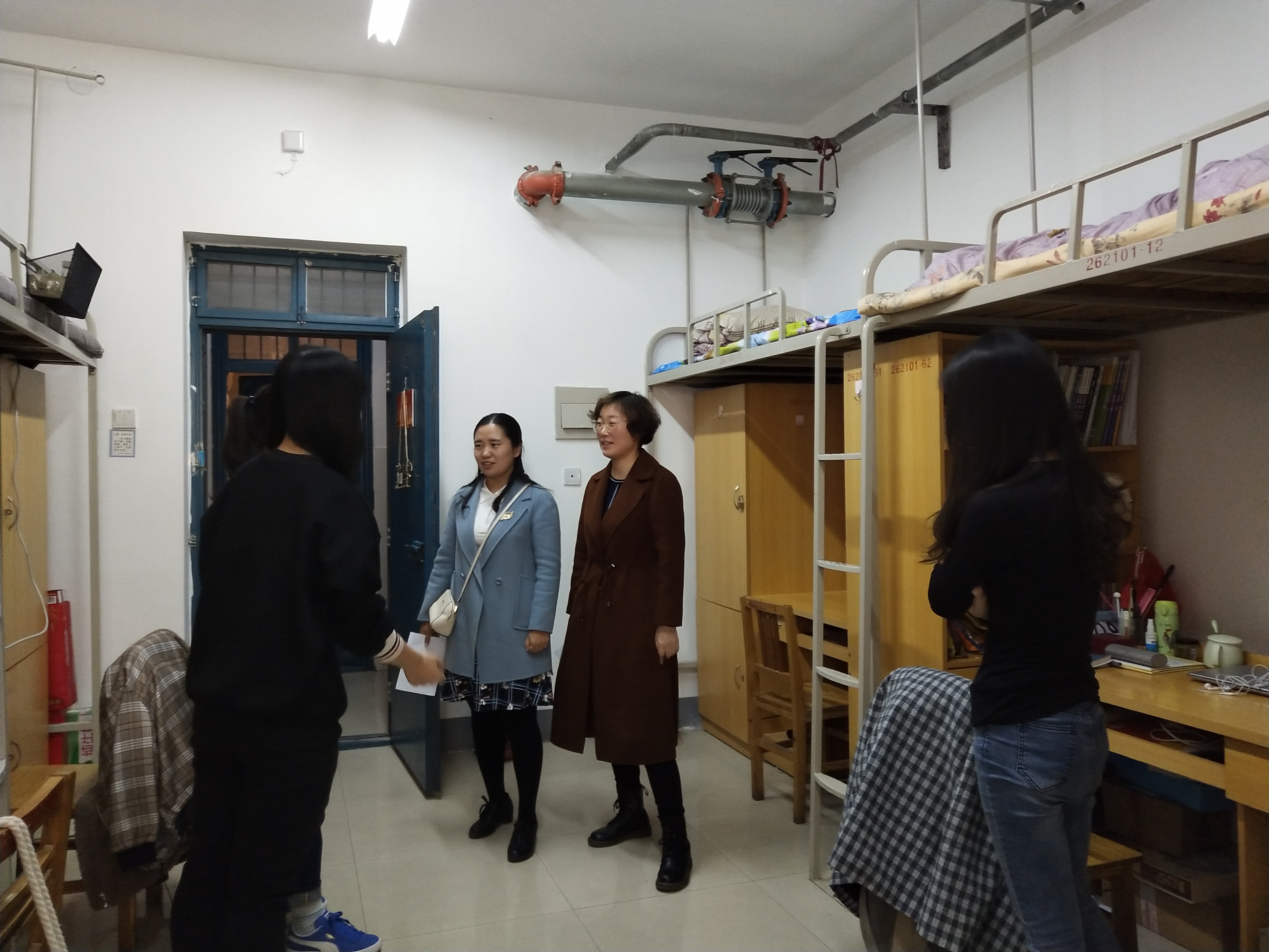 走访的过程中,学院领导老师亲切询问了同学们的学习生活情况,仔细查看学生宿舍的卫生安全等方面情况,认真排查宿舍电线和插座有无裸露、不合理安放现象以及同学们有无使用大功率电器,对发现的问题现场提出并按要求整改。向每一位同学传达宿舍安全的重要性,明确要求同学们一定不能使用违规电器,要自觉遵守宿舍管理制度,提醒同学们要提高安全意识,并要注意个人及宿舍卫生,要常开窗通风换气,预防春季流行病发生。此外,在五一假期来临之际,领导老师也特别强调假期安全问题,提醒同学们一定要提高安全防范意识,安全愉快的度过假期。