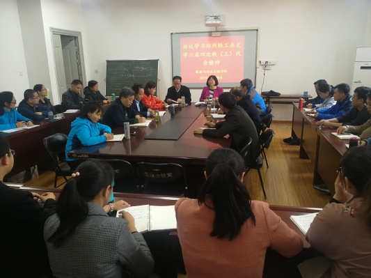 六届四次教职工代表大会精神会议,会议由党总支书记邵建敏主持,学院领导班子和全体教师参会。