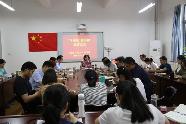 学院院长许培援首先带领全体教师学习了《新时代高校教师职业行为十项准则》、习近平总书记在全国高校思想政治工作会议和全国教育大会上的讲话精神;副院长吴学红带领全体教师学习了师德楷模黄大年、张玉滚、张丽莉、李芳的感人事迹,校师德先进个人金听祥带领全体教师重温人民教师誓词。
