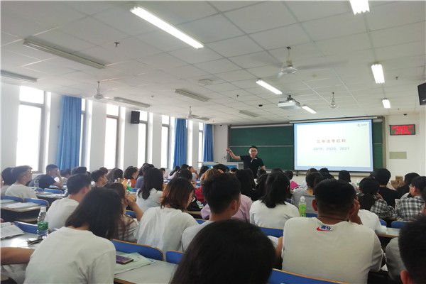 会上,王伟康老师从“拿着敲门砖,该敲哪扇门?”“律师成长路线”入手,对法考与考研之路如何选择方面为同学们的职业规划提供了宝贵建议。接下来,王老师结合《全面深化司法行政改革纲要》2018-2020版,以法考真题为例,从法考改革的变化及应对策略、备考认知误区、备考资料的选择等方面进行了详细剖析。并从考研学校的选择,备考计划的制定、复习技巧与方法等方面作了讲解,同学们受益匪浅。最后,王老师以“稳扎稳打,步步为营”“有基础,可谈未来;无基础,昙花一现”与同学们共勉。