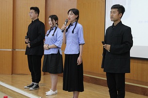 近年来,外国语学院以守望和创新中华优秀传统文化为责任,将文化传承和青年学生思想教育工作有机结合,定期举办传统文化讲座、经典文化翻译、红色电影配音、诗词诵读比赛等活动,积极营造大思政育人模式,通过丰富的校园文化活动将中华优秀传统文化理念和美德融入现实生活,内化为学生的内心需要。在传承文化的同时,充分挖掘历史文化题材的当代价值,汇聚语言文化的力量,滋养灵魂,润物无声,打造培育和践行社会主义核心价值观的有效载体。
