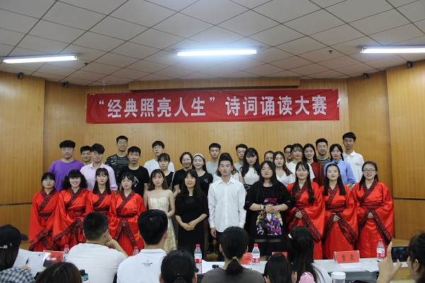 5月23日,我校第二十六届科技文化艺术节之“经典照亮人生”诗词诵读比赛在教三楼103教室举行。经过初赛,来自12个学院的21个节目参加决赛。