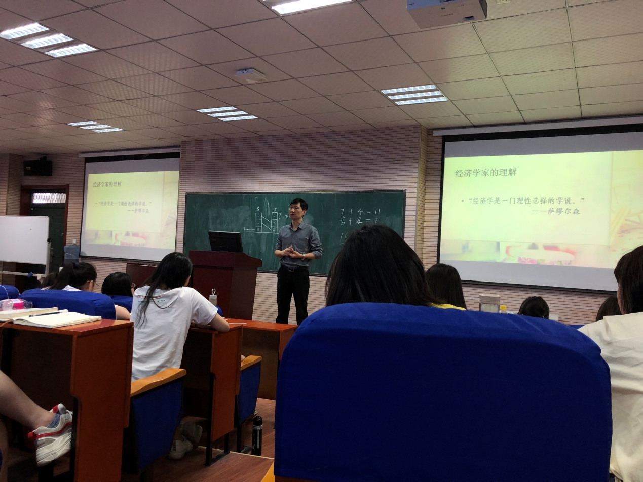 其中经济学经典文献研读环节,经管学院工商管理系张省教授以《论经济学思维的培养》为主题,将经济学中的经典理论与内容融入现实生活问题,深入浅出的讲解激起大家强烈的求知欲,引发了学生的积极反响;随后学生分小组认真研读了Ronald Coase的《the problem of social cost》这一经典经济学文献,从外部性到产权再到政府的作用,同学们进行了激烈的讨论,收获了很多启示,也体会到了团队合作的重要性。周五下午2点,学生分小组于经管学院211教室进行ppt汇报。汇报内容除了文献的研究内容外,学生还谈到了对自己的启示以及帮助。汇报持续了4个多小时,学生们准备充分,学术氛围高涨,受到了负责老师的一致好评。