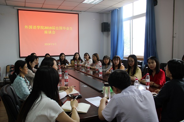 5月24日下午,外国语学院在东二楼306会议室召开2019届出国毕业生座谈会。外国语学院总支书记王伟、院长陈文凯、汉语国际教育系教师代表、就业专职辅导员和10名出国毕业生代表、2016级学生代表等参加座谈,会议由总支副书记孔祥娟主持。
