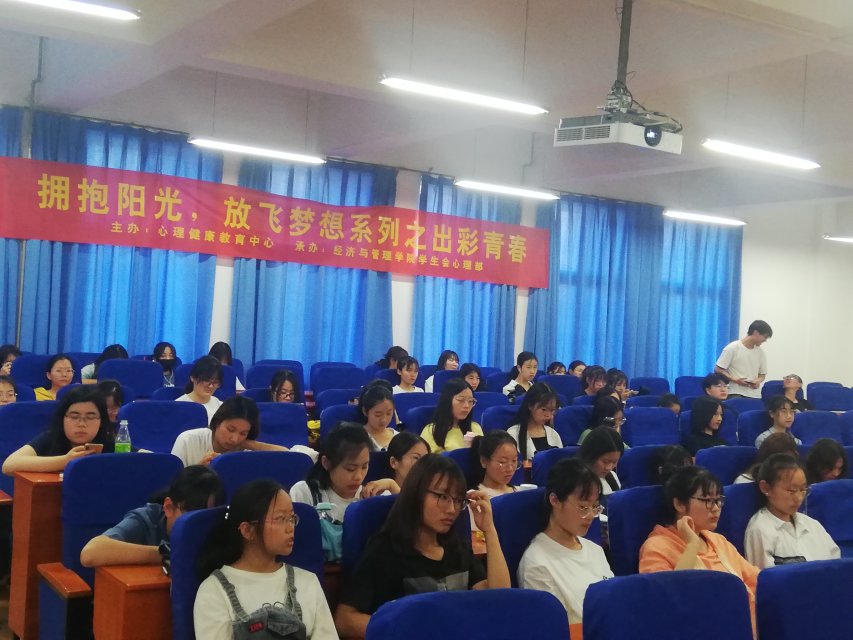 为了进一步响应“走下网络,走出宿舍”的号召,同时把心理健康教育和诗词书画结合起来,促进同学们的沟通与交流,拓宽大家的知识视野,从优秀的古籍中汲取营养。经济与管理学院于5月24日下午五点半在经管楼211举办蒲公英素质提升项目“拥抱阳光,放飞梦想”系列之出彩青春活动。