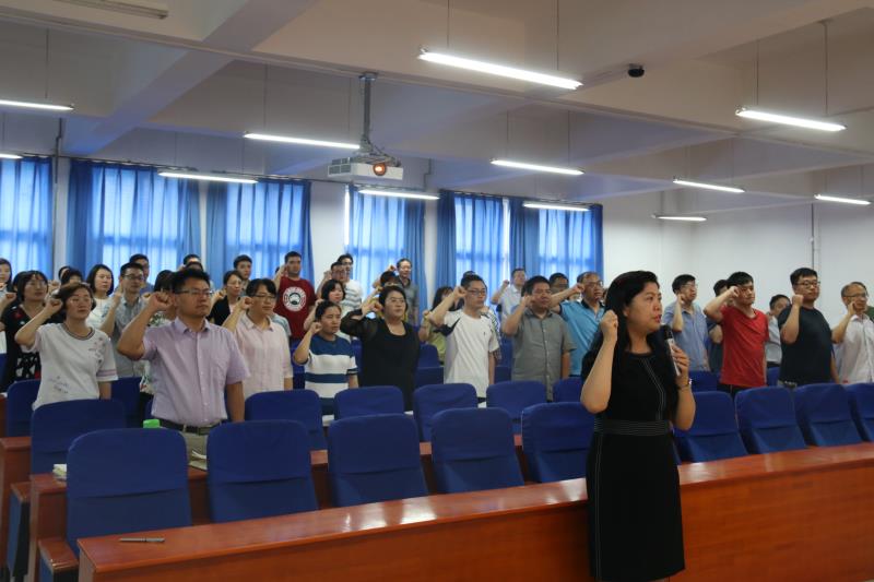 宣誓会上,在领誓人刘珂院长的带领下,经济与管理学院教师全体肃立,紧握右拳,庄严宣誓:“我志愿做一名光荣的人民教师,忠诚人民教育事业,贯彻党的教育方针。爱国守法,敬业爱岗;教书育人,关爱学生……”用铿锵有力的声音许下坚定的诺言。