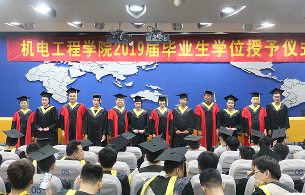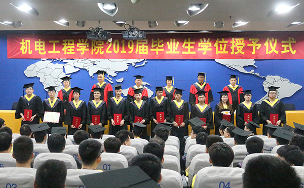 天色无情,似送离怀千里;年年桃李,当祝鸿雁高飞。2019年6月21日上午9点,机电工程学院在图书馆报告厅举行2019届毕业生毕业典礼暨学位授予仪式。机电工程学院党总支书记蒋玮、院长罗国富、副院长陈鹿民、肖艳秋、何文斌、党总支副书记孙琳、辅导员及2019届全体毕业生参加了典礼,大会由党总支副书记孙琳主持。