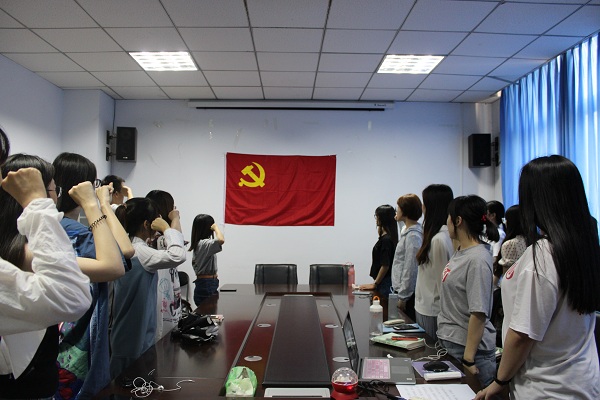2019年7月1日下午,外国语学院学生两个党支部在东二楼306举行迎七一特别主题党日活动,学生第一党支部、第二党支部全体党员近四十人参加活动。
