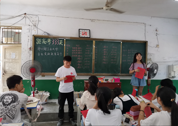 随后,小分队赴确山第一高级中学看望即将进入高三紧张复习工作的莘莘学子。活动中,小分队成员向大家发放了学校的资助宣传手册,并详细宣传介绍了我校国家奖助学金、国家助学贷款、校内奖学金、勤工助学、临时困难补助等各项资助政策,鼓励有经济困难的同学树立信心,凭借自身努力和国家资助实现大学梦。同学们一致表示,学长学姐的介绍使他们对国家资助政策有了进一步的深入了解,坚定了他们实现大学梦的信心。
