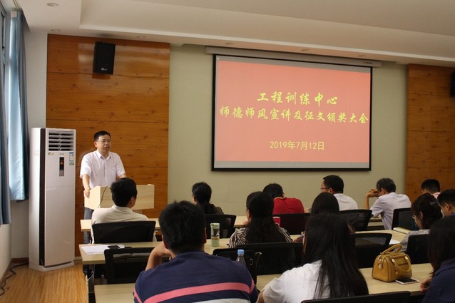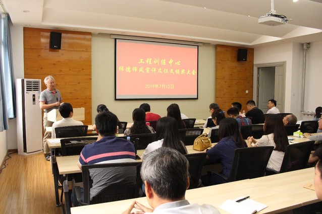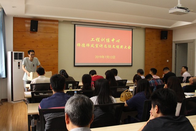 为深入贯彻落实全国教育大会、全国高校思想政治工作会议、全国学校思想政治理论课教师座谈会精神,进一步弘扬高尚师德、优良师风,激发教师爱岗敬业、无私奉献精神,7月12日上午,工程训练中心在工训楼312室召开师德师风征文宣讲及颁奖大会,中心领导班子、全体教职工参加了会议,会议由主任岳永胜主持。