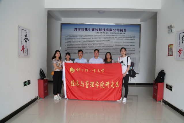 2019年7月15日,在MBA和MPAcc项目中心主任彭青秀博士、辅导员吴雨衡老师的带领下,由经济与管理学院3名研究生组成的暑期社会实践团队——“深化改革观察团”以“参观企业经营模式,调查企业发展现状”为主题赴河南花花牛畜牧科技有限公司开展座谈、调研、走访等社会实践活动,以实际行动学习企业经营模式,调查企业经营现状。
