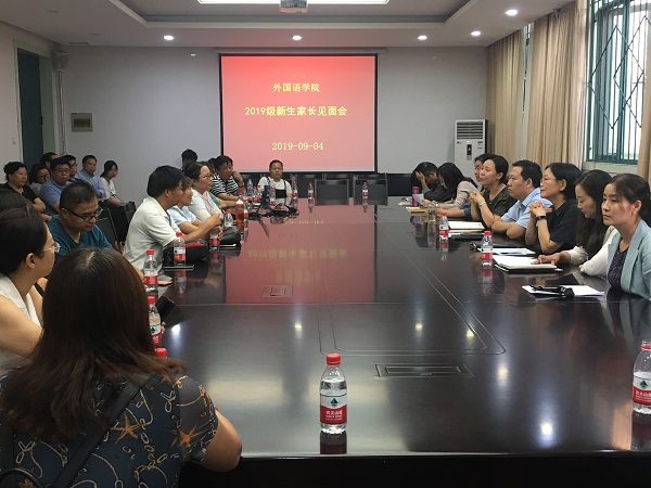 9月4日下午,外国语学院在东二楼109会议室举行2019级学生家长座谈会,学校与家长共商学生培养发展。外国语学院党政领导、系主任、辅导员参加座谈会,并与新生家长就学校学院发展、人才培养、专业设置及特色、校风学风建设、学生管理和就业等问题进行了交流。座谈会由党总支孔祥娟副书记主持。