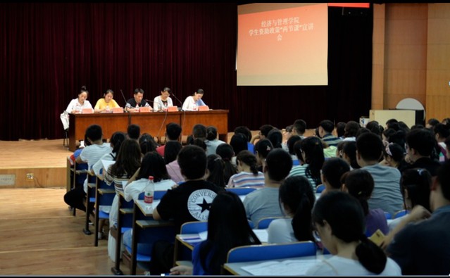 为进一步做好学生资助工作,继续落实学生资助政策宣传“两节课”制度,9月5日,经济与管理学院在科学校区活动中心208开展了资助政策宣讲活动,经济与管理学院党总支副书记陈章美老师、新生辅导员及全体2019级新生参加会议。