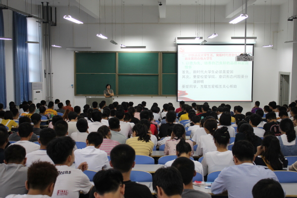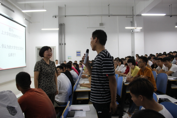 邵建敏书记认为现在的大学生生逢中国梦的实现的关键时期,要尽快适应大学生活,正确面对理性解决当代青年大学生所面临的问题,成长成才,服务国家发展,实现人生价值。邵建敏书记的报告幽默风趣,一环扣一环,将话题逐渐引深,围绕青年大学生如何实现德智体美劳全面的发展展开了讨论,她联系自己的亲身经历分享了上大学的目的和人生思考,发人深省。为新生上了一场互动频频、形式活泼、内容丰富的思想政治理论课。现场气氛活跃,师生互动交流,掌声不断。