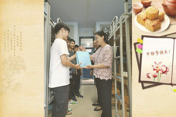 首先,孙琳副书记对学生宿舍的安全、卫生方面给予了肯定和指导;接下来,针对新生近期的学习、生活情况进行了询问,希望他们可以尽快适应大学生活,转变好角色,不负大学四年的青春。一同的徐老师解答了新生关于生活和学习方面的困惑;最后,两位老师为学生送上了精心准备的中秋月饼,学生们感受到了学院最真挚的关怀和最暖心的祝福。