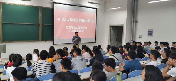 9月16日上午9点,能源与动力工程学院在工程楼109举办了2019级大学生创新创业报告会,程传晓老师带领知行创新创业团队为2019级学生做了创新创业报告。