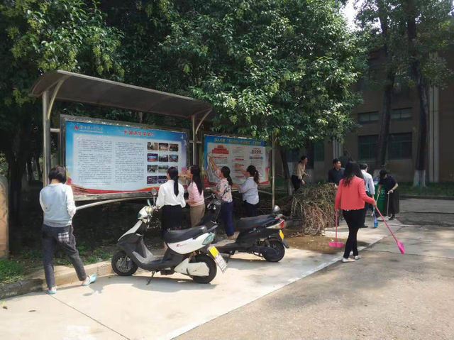 为了贯彻落实《河南省志愿服务条例》和学校文明创建工作的要求,弘扬“奉献、友爱、互助、进步”的志愿精神,2019年9月18日外国语学院志愿者服务队组织开展了擦洗东二楼周边宣传栏及清扫周边环境活动。