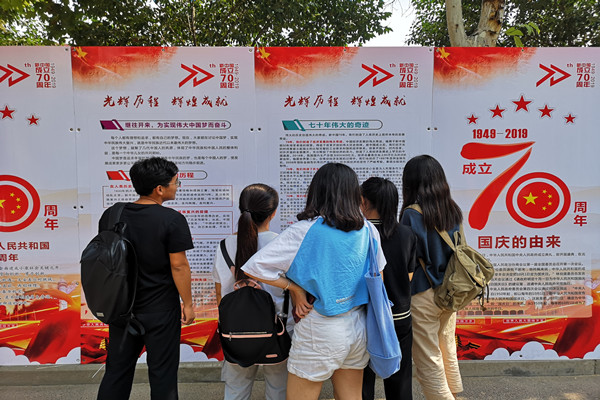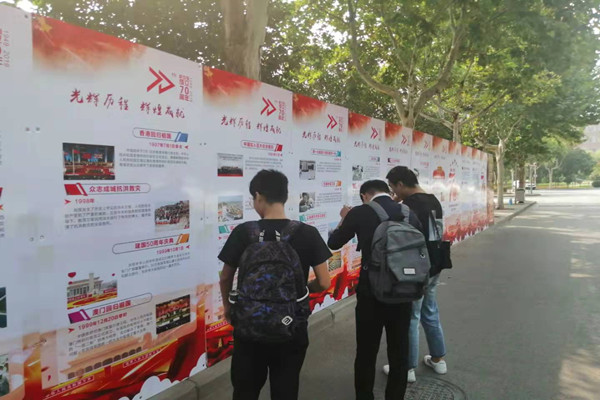 70年筚路蓝缕,70年砥砺前行。从1949到2019,一张张展板带领同学们跟随历史年轮,回顾新中国走过的历程,感受新中国成立70年来的社会变迁,物质条件的逐渐富足和社会制度的不断完善。成就展详细介绍了祖国这70年来的风雨兼程,展示了新中国由贫到富、由弱到强的曲折经历,70年的非凡历程创造出经济飞速发展、民生极大改善、科技日新月异、制度革故鼎新的伟大奇迹。同学们纷纷驻足观看,感受着爱国主义寻根之旅,探索着爱国主义的深层内涵。