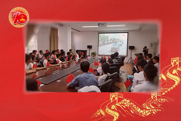 上午10时,在礼炮声中,升旗仪式隆重举行,嘹亮的《义勇军进行曲》响彻整个天安门广场,鲜艳的五星红旗像一束火焰在天幕上燃烧。当习近平总书记在讲话中高呼:“伟大的中华人民共和国万岁!伟大的中国共产党万岁!伟大的中国人民万岁!”时,整个会议室沸腾了,师生热烈的掌声经久不息。军旗猎展,国歌嘹亮;威武之师,慨当以慷。国庆七十周年阅兵仪式正式开始,受阅部队在长安街列阵,光荣接受中共中央总书记、国家主席、中央军委主席习近平的检阅。受阅部队斗志昂扬,整装待发,用实力向中华人民共和国成立七十周年庄严献礼,用忠诚向人民展现中国军人的担当。看到防空导弹、无人机、东风-17导弹等这些“神兵利器”,师生难以抑制内心的激动振奋,纷纷感叹祖国不仅仅是站起来了,也不仅仅是富起来了,而是真的强大起来了,作为中国人,内心无比骄傲和自豪!