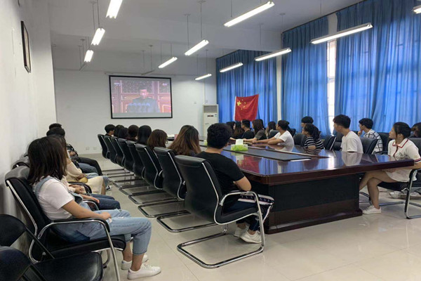 10月1日上午,庆祝中华人民共和国成立70周年大会在北京天安门广场隆重举行。中共中央总书记、国家主席、中央军委主席习近平发表重要讲话,并举行盛大的阅兵式和群众游行,政法学院师生收看庆祝中华人民共和国成立70周年大会直播。