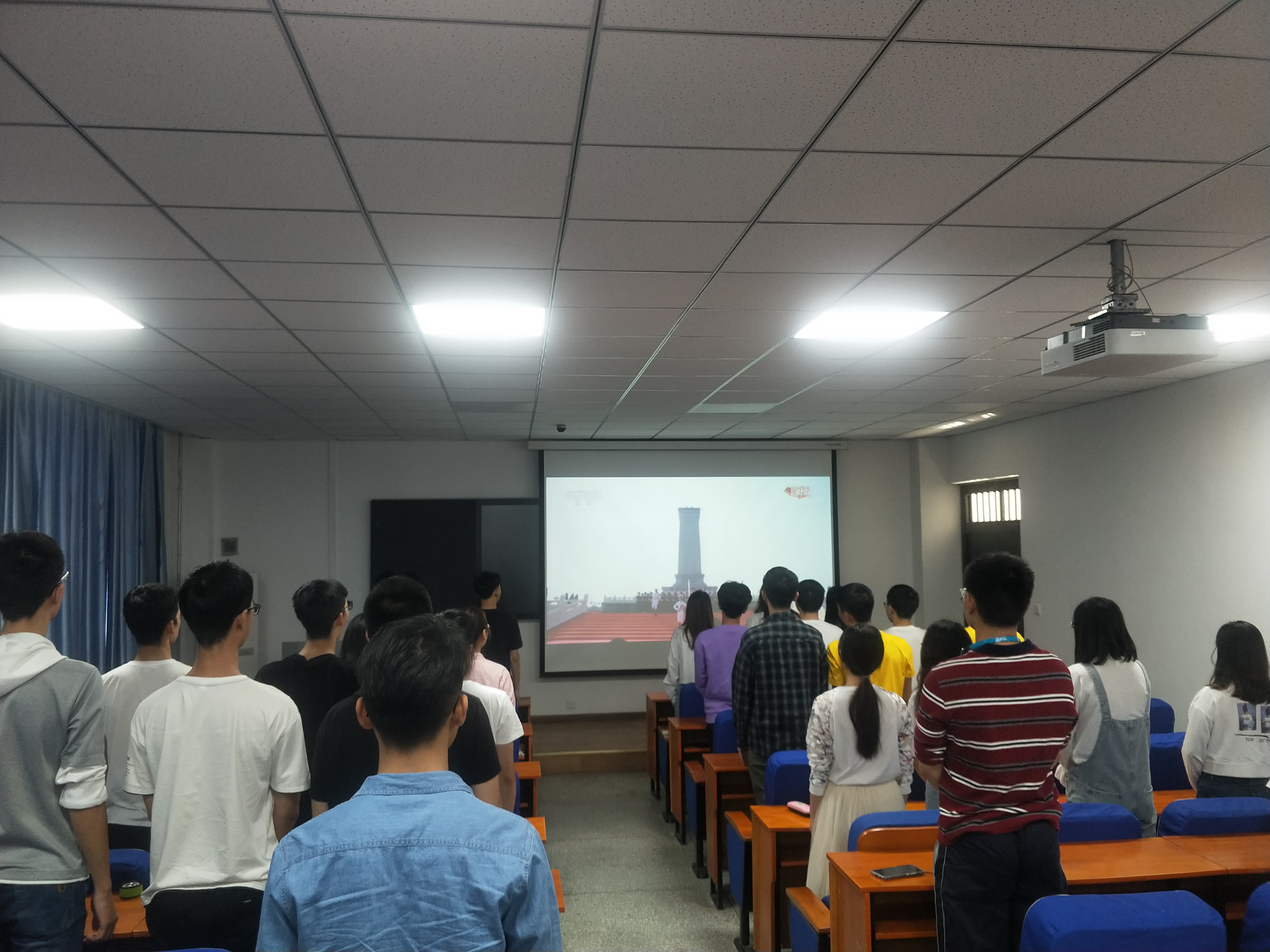 上午10时,中共中央总书记、国家主席、国家军委主席习近平及党和国家领导人登上天安门城楼。当国务院总理李克强宣布阅兵开始、升国旗唱国歌时,观看直播的师生们不约而同全体起立共唱国歌。随后习近平总书记在北京天安门城楼上发表重要讲话。