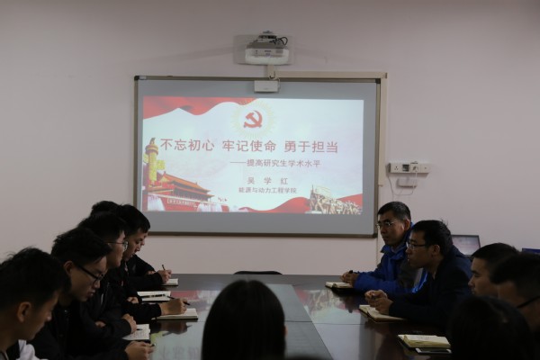 根据“不忘初心、牢记使命”主题教育安排,10月16日上午,在工程楼407会议室,能源与动力工程学院党总支委员、副院长吴学红为研究生党支部讲了主题为《不忘初心 牢记使命 勇于担当》党课,曹泷老师和2017级、2018级研究生也参加了此次党课。