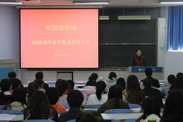 10月17日下午,外国语学院2020届毕业生就业动员大会在教三楼102室召开。党总支副书记孔祥娟、学工办副主任王纯、就业专职辅导员李昱盛及2020届全体毕业生参加了会议。