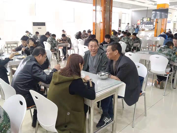 在学生餐厅,郗冰杰书记、付金华副主任与学生一起排队打饭。就餐中,郗书记不时亲切地询问学生,并就学生关心的问题进行了亲切交流,认真听取了学生的意见和建议。
