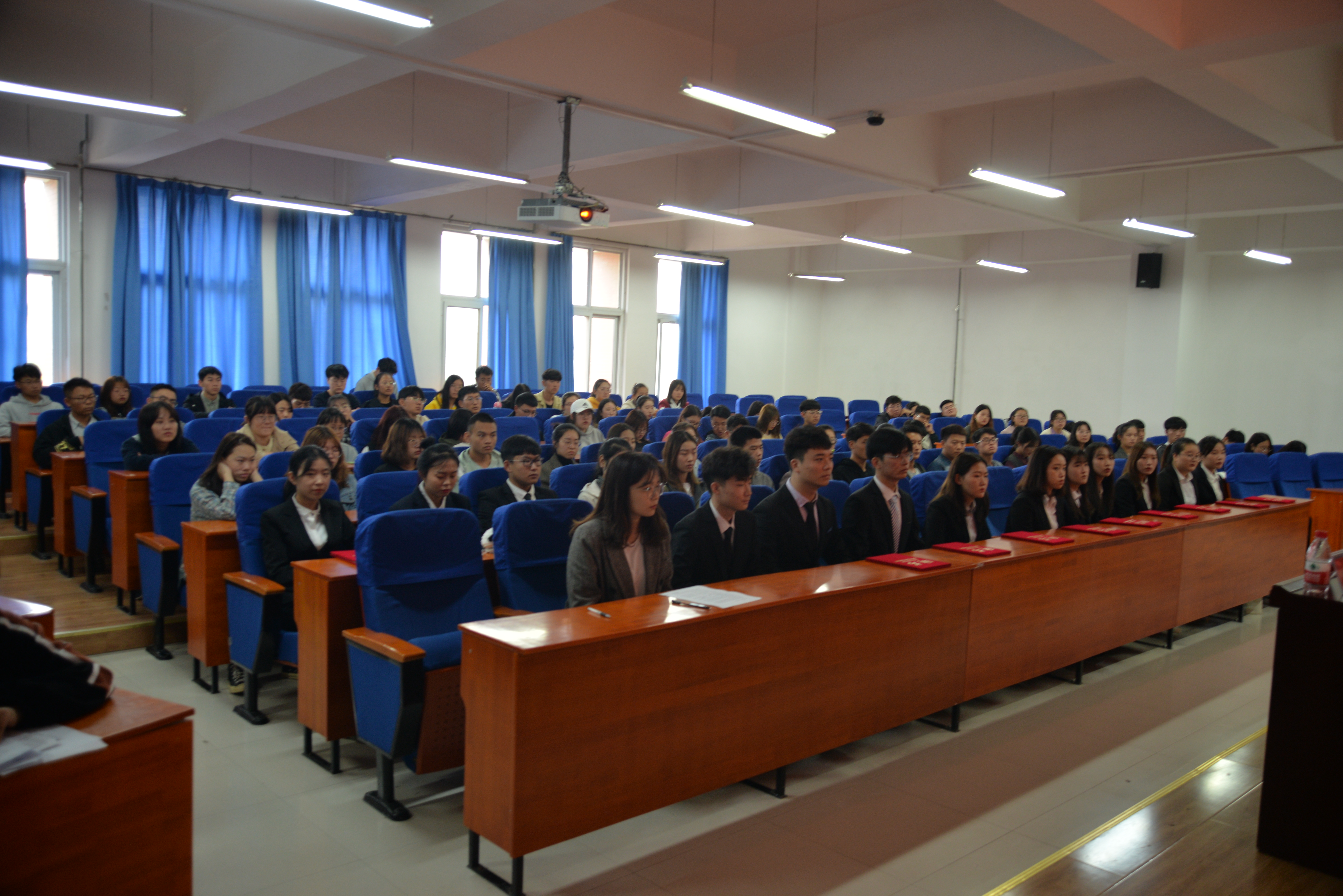 2019年10月23日中午12:30,经济与管理学院在经管楼211举办团学干部培训大会。党总支副书记陈章美老师和全体专职辅导员,分团委学生会主要团学干部以及19级团学干部都参加了此次大会。会议由分团委书记姚少华老师主持。