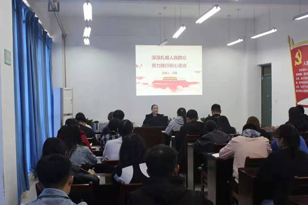 为扎实推进“不忘初心、牢记使命”主题教育,10月24日下午,校党委副书记马英以《深深扎根人民群众,努力践行初心使命》为题,为政法学院本科生第一党支部全体党员及入党积极分子讲授专题党课。
