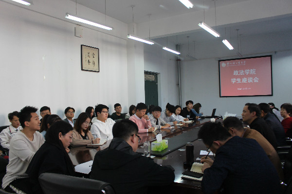 为了更好的了解学生学习和生活,充分调动学生参与学校管理的积极性和主动性,进一步提高人才培养质量。10月31日15:00,政法学院在政法楼212室,召开全体学生座谈会。政法学院全体领导班子成员、各专业负责人、辅导员和40位学生代表参加了本次座谈会,政法学院栗志强副院长主持了会议。