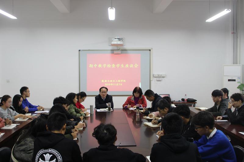 按照学校期中教学检查工作部署,11月7日下午,能源与动力工程学院在工程楼407召开2019-2020学年第一学期期中教学检查学生座谈会。学院班子成员、各教研室主任、学院督导组组长、辅导员老师,教学秘书以及各年级、专业学生代表40余人参加了座谈会。会议由许培援院长主持。