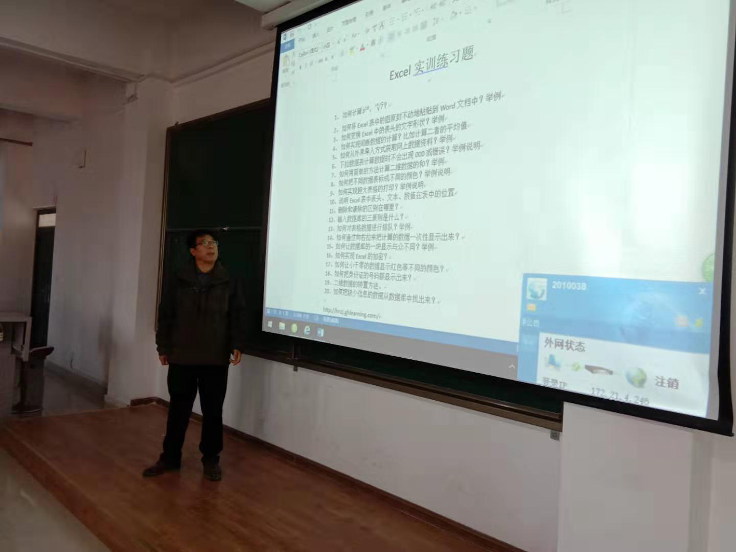 为提高学生的现代办公技能,全面提升学生的数据处理能力,经济与管理学院2017级工商管理专业实习实训环节的Excel实训如期举行,培训地点是科学校区经管楼309室,培训时间为2019年12月2日至2019年12月6日。
