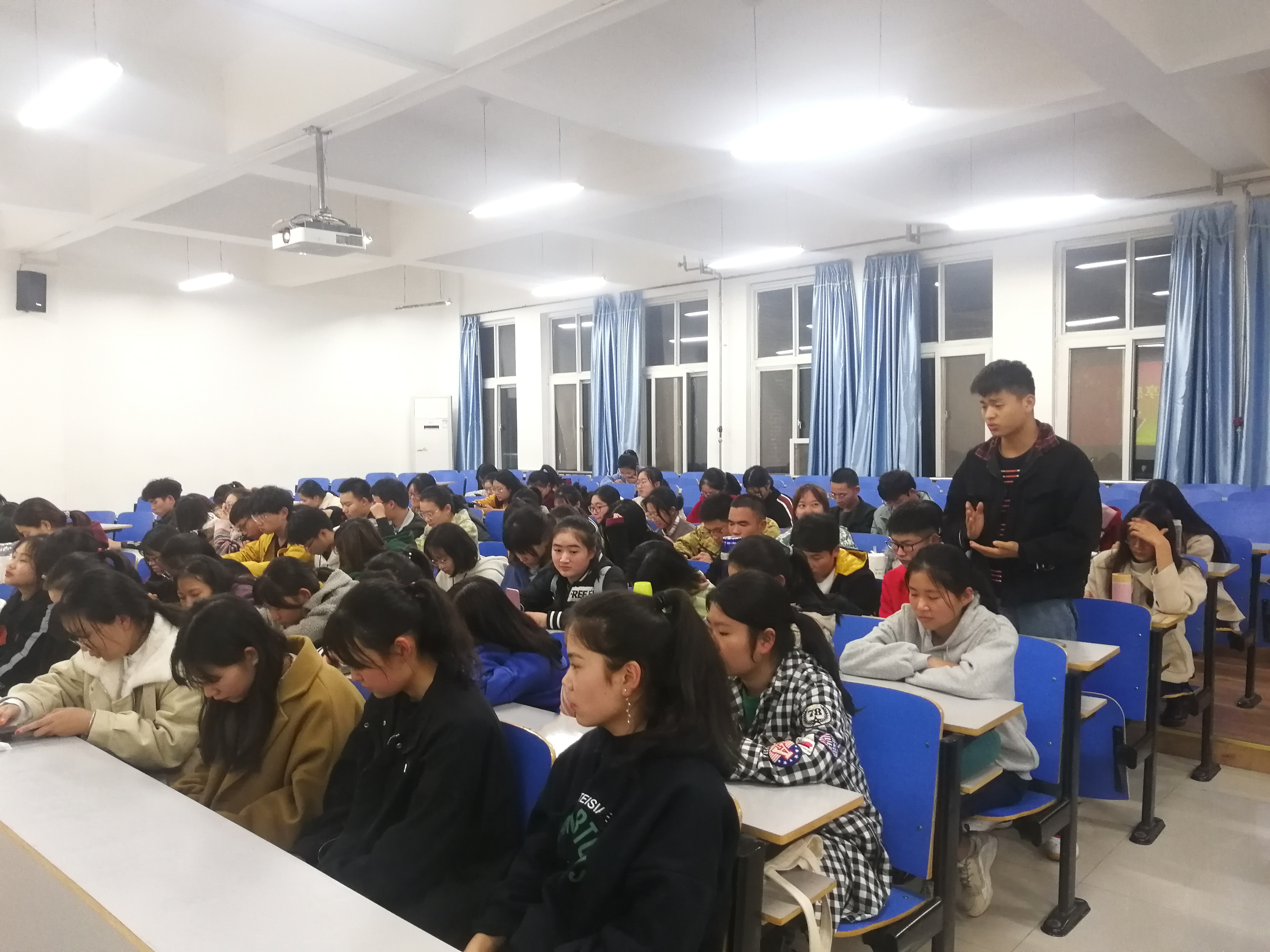 为纪念一二·九运动84周年,传承红色基因,开展爱国主题教育,培养新时代有为青年,经济与管理学院于11月22日晚上19:00到21:30在经管楼309举办以“重温红色经典,弘扬爱国精神”为主题的爱国电影展播活动。经济与管理学院2019级各班学生代表参加了本次活动。