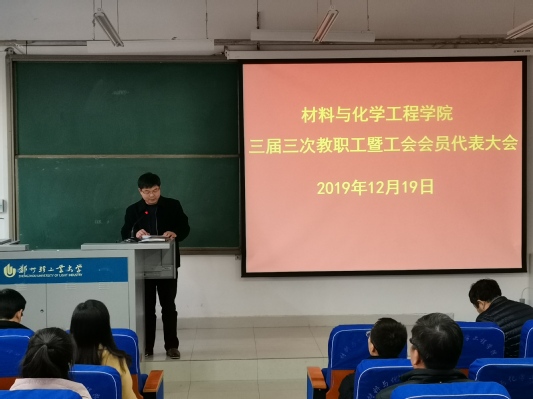 2019年12月19日下午,材料与化学工程学院在科学校区化工楼218室召开三届三次教职工暨工会会员代表大会,学院教代会代表参加会议。会议由学院党总支书记康国磊主持。