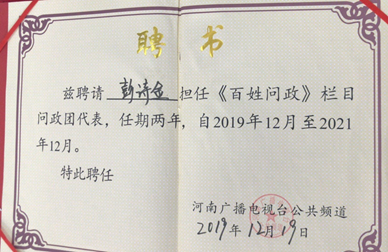 近日,由河南省政府督查室及河南广播电视台联合主办的电视节目《百姓问政》举办问政团招募暨聘用仪式。我校彭诗金教授被聘为问政团代表。