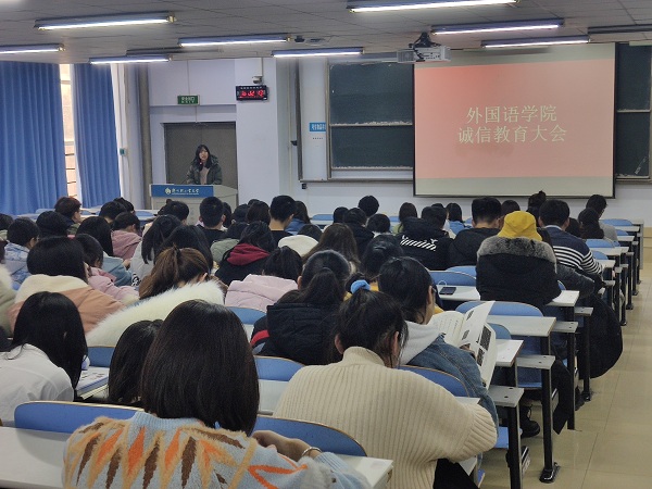 为严肃考试纪律,强化诚信考试意识,1月2日,外国语学院召开诚信考试教育大会,倡导同学们诚信考试,做一名文明的大学生。