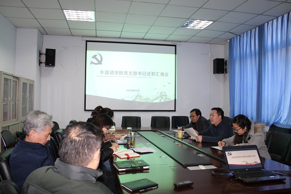 为深入学习贯彻习近平新时代中国特色社会主义思想和党的十九大精神,切实推动党支部建设“两化一创”任务向纵深发展,1月3日,外国语学院召开党支部书记抓党建工作述职评议大会。学院全体总支委员、各支部书记参加会议。会议由党总支书记王伟主持。