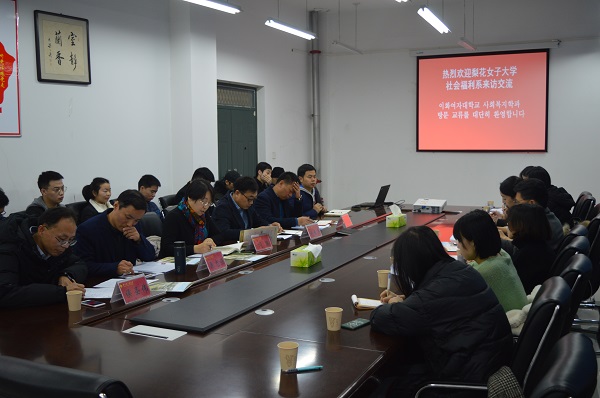 2020年1月6日上午,韩国女子梨花大学社会福利系郑益仲教授一行9人来政法学院访问交流。