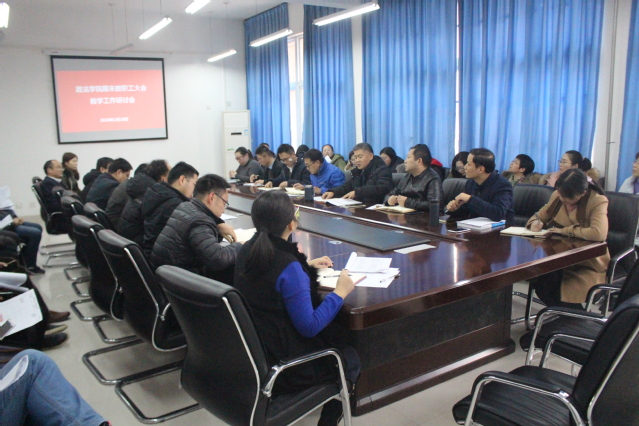 1月10日下午4:00,政法学院期末教学工作研讨会在政法楼212会议室胜利召开。政法学院全体班子成员和系主任、部分教师代表参加了此次会议。会议主要围绕“建设一流专业”、“建设一流本科课程”、“2020年各专业建设的规划和设想”、“提高课堂教学质量”、“提高实验教学的质量”等几个主题展开研讨。