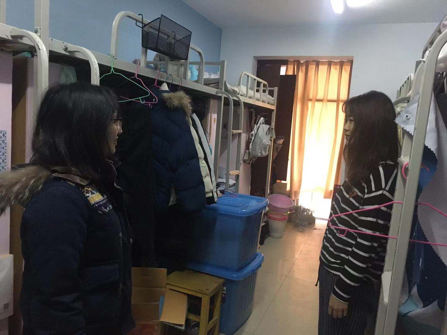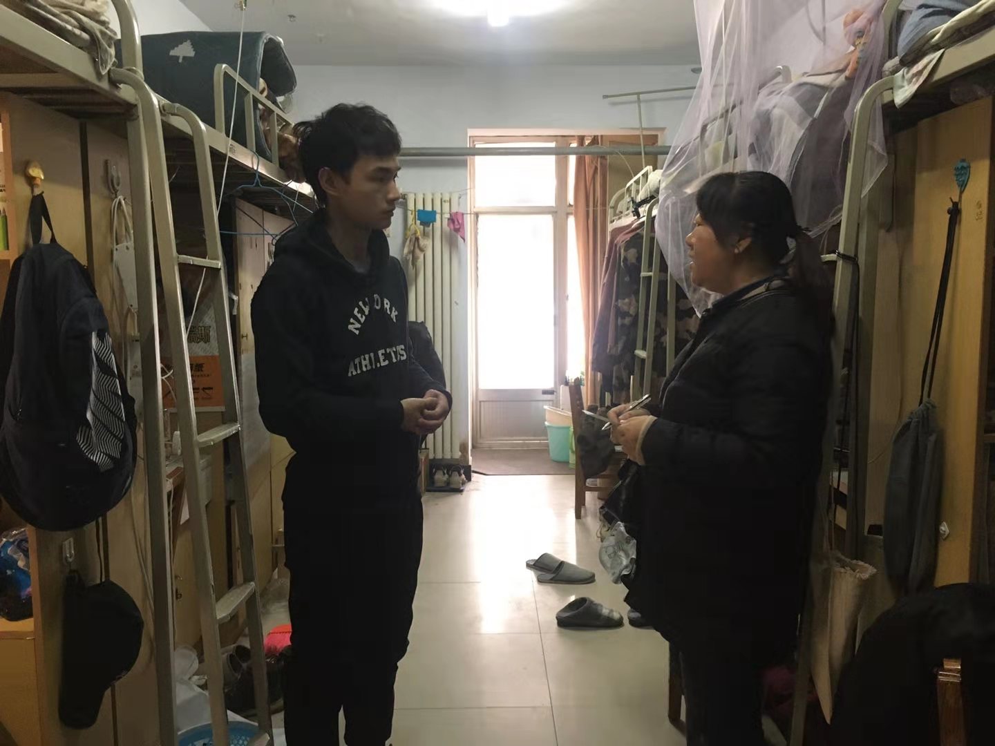 老师们每到一个宿舍都与同学们亲切交谈,了解学生假期安排,关注学生去向。贾书记提醒学生在离校前收拾好个人物品,认真检查宿舍的卫生安全,关好门窗和电源,尤其在学生回家途中注意个人的人身和财产安全。同时也希望学生能合理利用假期时间查漏补缺,做好相关课程的复习与预习。