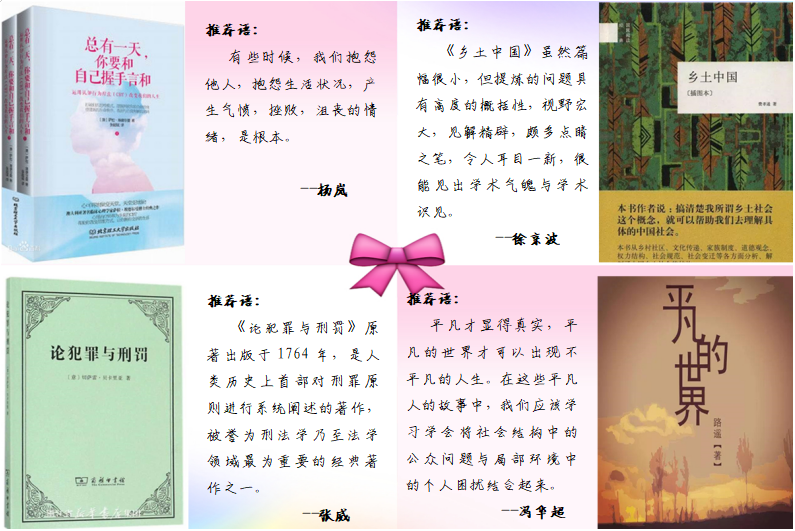 为进一步贯彻落实学校疫情防控期间“停课不停学”工作安排,丰富学生第二课堂活动,政法学院全体班主任为全院学生制作了一份特殊的阅读书单,帮助学生们提高专业能力,提升人文素养,充实课余生活。