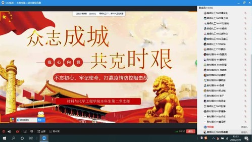 疫情就是命令,防控就是责任。为切实强化疫情防控工作,发挥党支部战斗堡垒作用和党员先锋模范作用,在疫情防控阻击战的关键时期,3月5日下午,材料与化学工程学院各学生党支部通过学习强国、QQ群等平台召开“众志成城、共克时艰”主题党日活动。