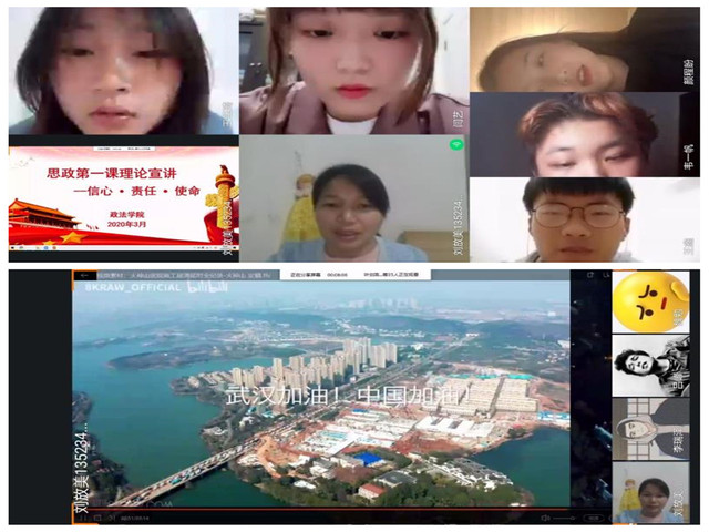 为广泛宣传习近平总书记重要指示精神,引导学生树立战疫必胜信心,近期,政法学院全体辅导员开展了“2020年春季开学思政第一课”理论宣讲,全体辅导员和学院各班级学生参与了此次活动。