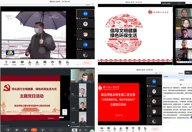 近期,政法学院各党支部分别通过钉钉视频会议、党支部微信群、视频讨论等方式,先后组织开展了“文明健康新风尚,绿色环保我先行”主题党日活动。各支部全体党员参加活动。