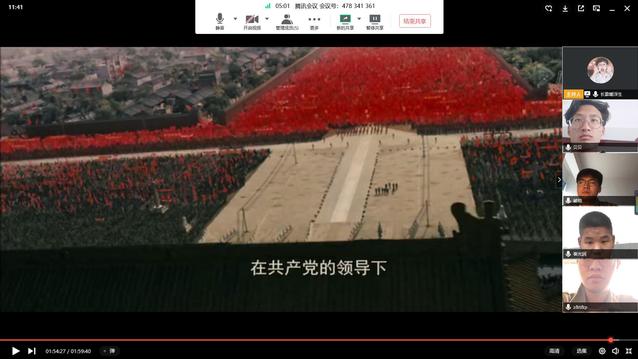 同学们在线上共同观看了红色电影《建党伟业》,这部影片展现了从1911年辛亥革命爆发到1921年中国共产党第一次全国代表大会召开10年间中国发生的一系列重大历史事件,由民初动乱、五四运动及中共建党三部分剧情组成。毛泽东、李大钊、陈独秀、蔡和森、张国焘、周恩来等一大批中国共产党员在风雨摇摆的时代为国家赴汤蹈火、至死不渝,他们的革命精神让每一位观众深受鼓舞。其中,中国在巴黎和会上外交失败的消息传来,全国各地青年学子把满腔的爱国热情迸发出来,他们以无所畏惧的姿态走上街头,高呼“革命万岁”的口号示威、游行,拳拳爱国心震撼全场。活动结束后,团员青年们纷纷表示,要从伟大的五四精神中汲取精神力量,深入学习习近平新时代中国特色社会主义思想,把准新时代主题,不断努力学习专业文化知识,提高自身的综合素质,练就过硬本领,做有担当、有作为的新时代青年。