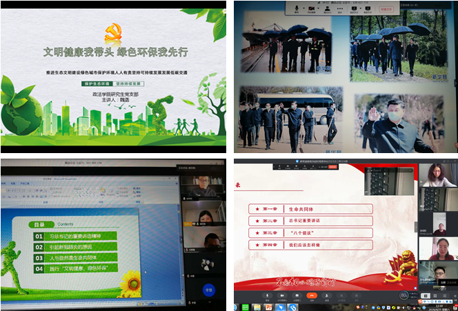 为深入学习贯彻习近平总书记关于生态文明建设和公共卫生安全的重要讲话精神。近期,政法学院各党支部分别召开“文明健康、绿色环保”主题微党课。各支部全体党员参加活动。