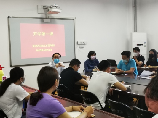 5月18日,能源与动力工程学院在工程楼407组织全体返校研究生举行了“开学第一课”教育活动,能源与动力工程学院党委书记邵建敏、院长许培援出席,党委副书记李俊丰、副院长金听祥、研究生辅导员曹泷参加了活动。