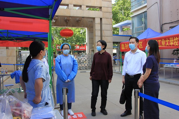 5月19日,外国语学院党委书记王伟、院长陈文凯、副书记马宇及全体辅导员一行深入东风校区学生生活园区二区,走访慰问了返校复学志愿者。